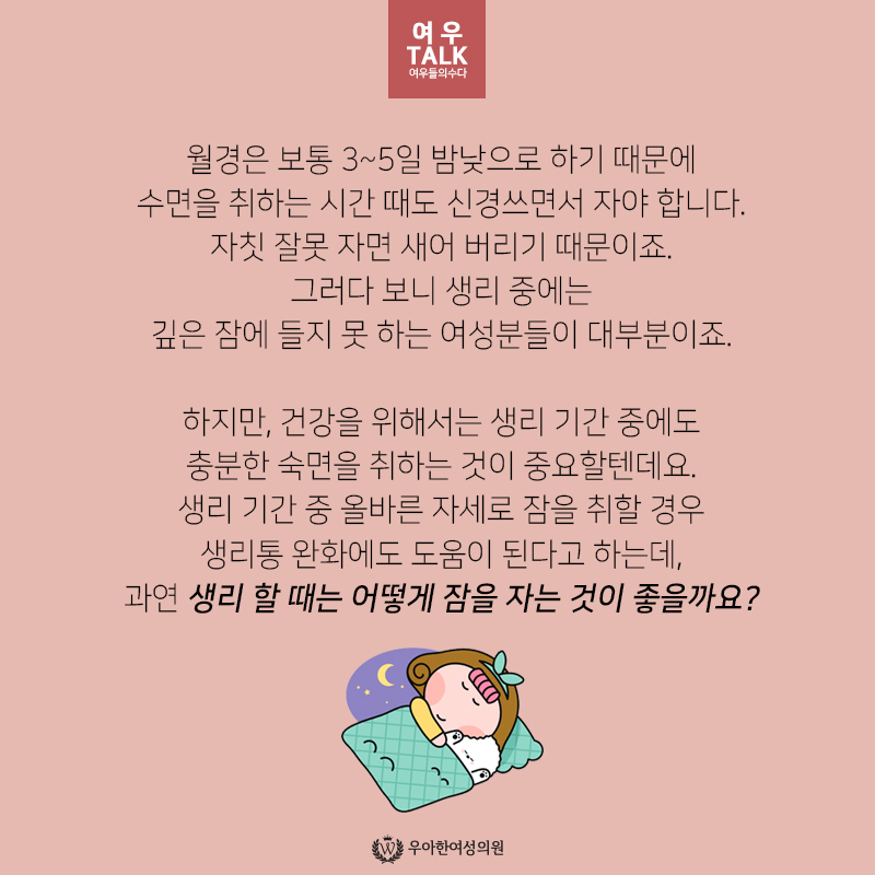 생리할 때 올바른 수면 방법에 대해 알아보아요!😉